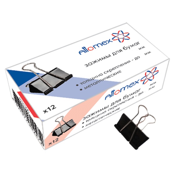 Зажимы для бумаг 15 мм (12 шт) черные в картонной коробке Attomex/12/360