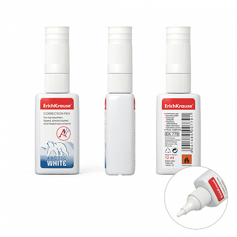 Корректор-ручка 12 мл ErichKrause Arctic white/Арктический белый пластиковый наконечник/12/480