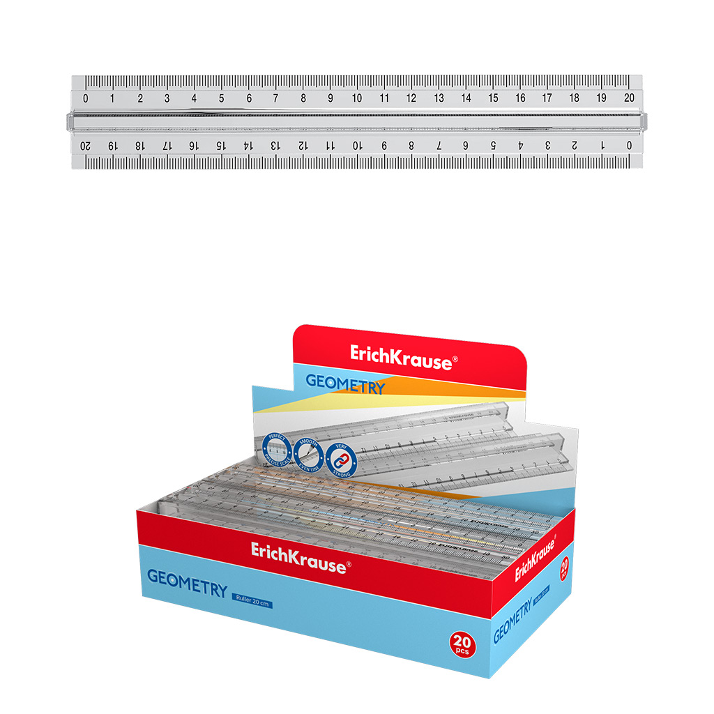 Линейка 20 см пластиковая прозрачная с держателем Clear/Прозрачность ErichKrause/20