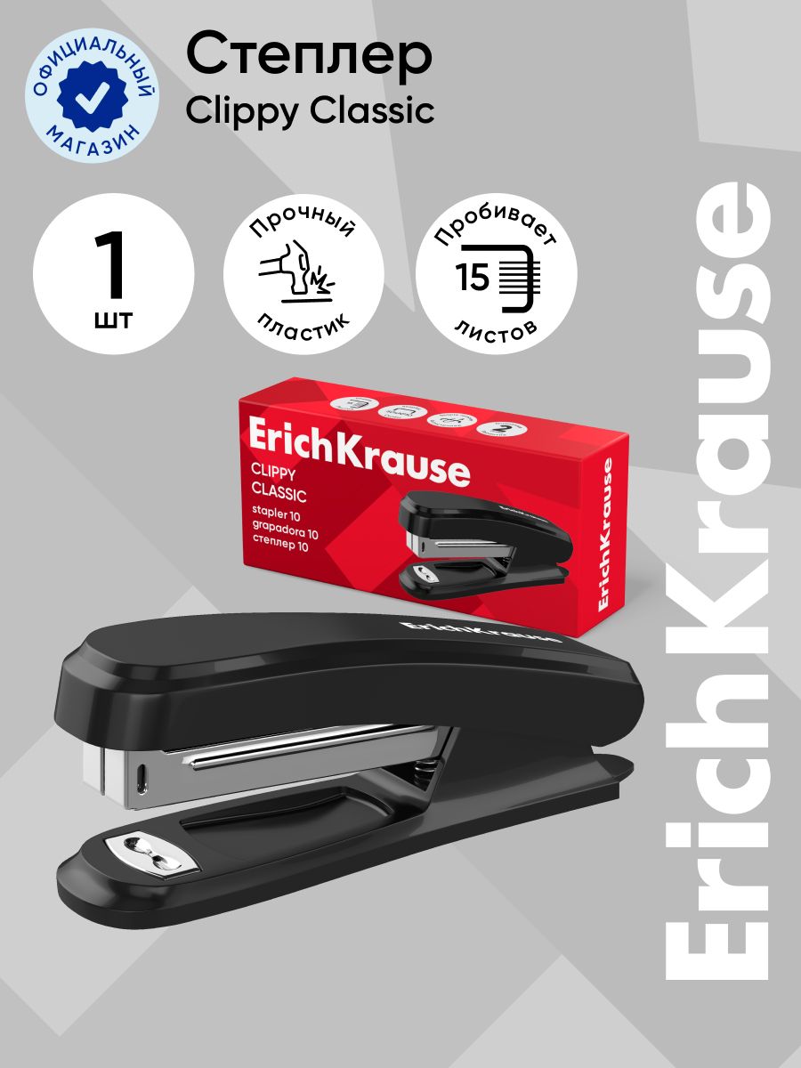 Степлер № 10 до 15 л пластиковый черный ErichKrause Clippy Classic/Мини Классика/24