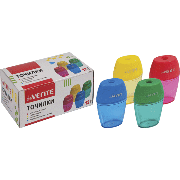 Точилка пластиковая с 1 отверстием и контейнером ассорти deVENTE/12/480