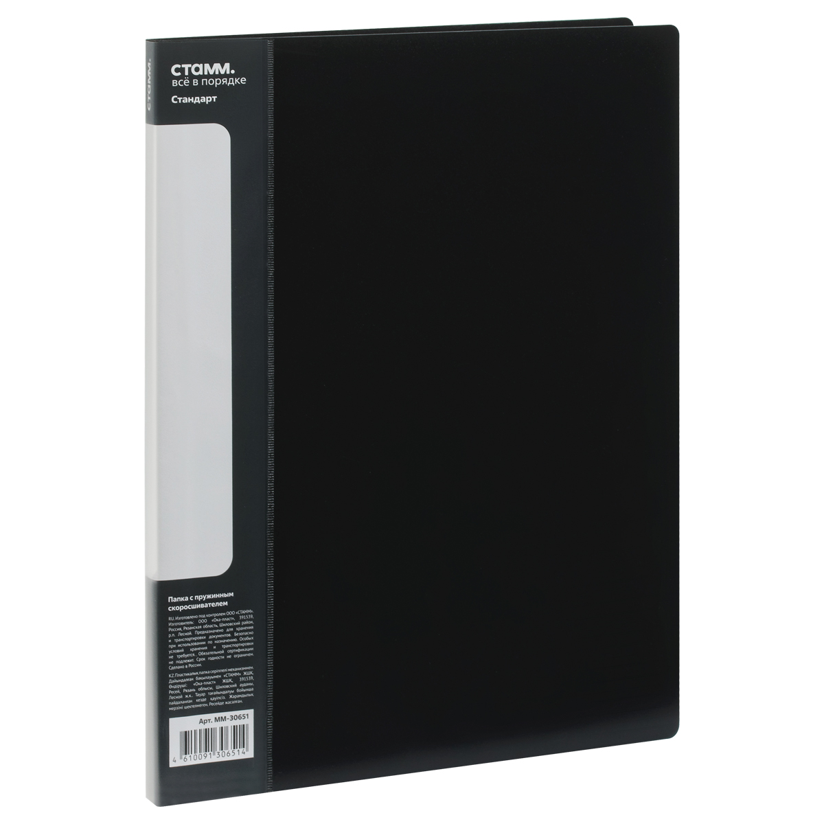 Папка-скоросшиватель А4 черная на пружине СТАММ Стандарт/30