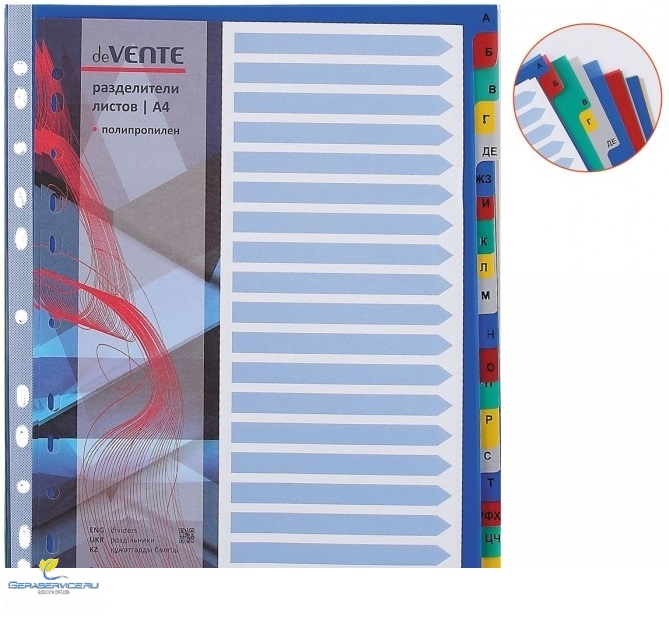 Разделитель А4+ (а-я) пластиковый deVENTE/10/60