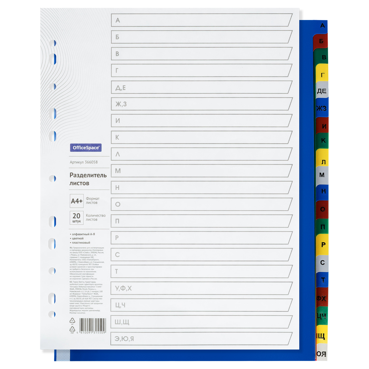 Разделитель А4+ (а-я) пластиковый OfficeSpace/15/90