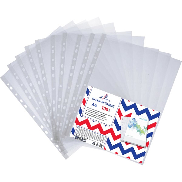 Вставка в сегрегатор А4 глянцевая 20 мкм 100 шт. в упаковке Attomex/40