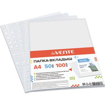 Вставка в сегрегатор А4 глянцевая 50 мкм 100 шт. в упаковке (до 60 листов) deVENTE/10