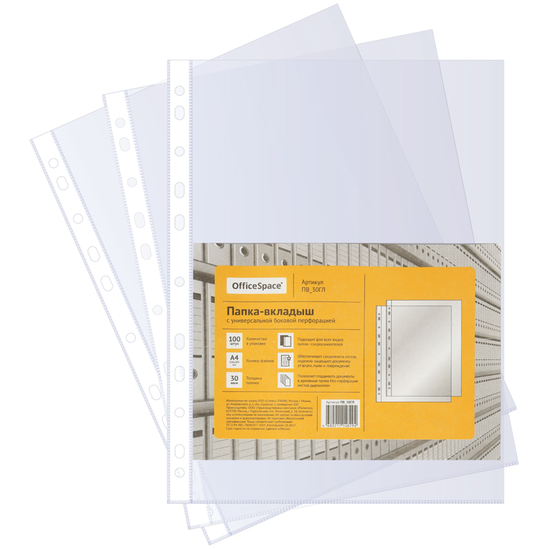 Вставка в сегрегатор А4 глянцевая 30 мкм 100 шт в упаковке OfficeSpace/20