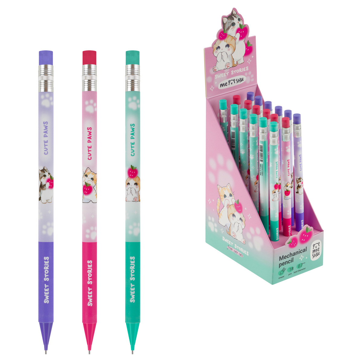Карандаш механический 0,7 HB MESHU Nice kittens ассорти/18