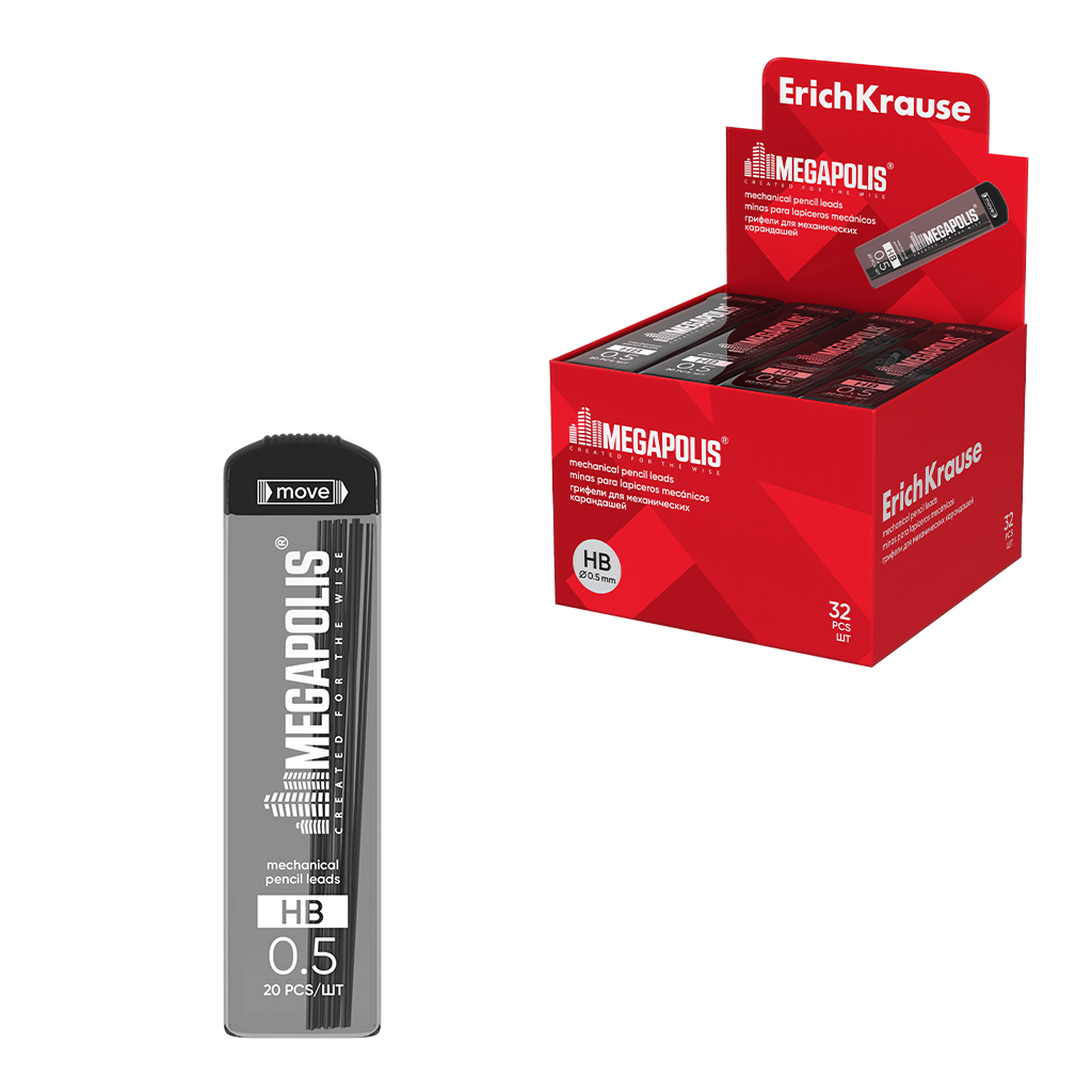 Грифель для механического карандаша 0,5 HB/ТМ ErichKrause MEGAPOLIS (20 шт.)/32