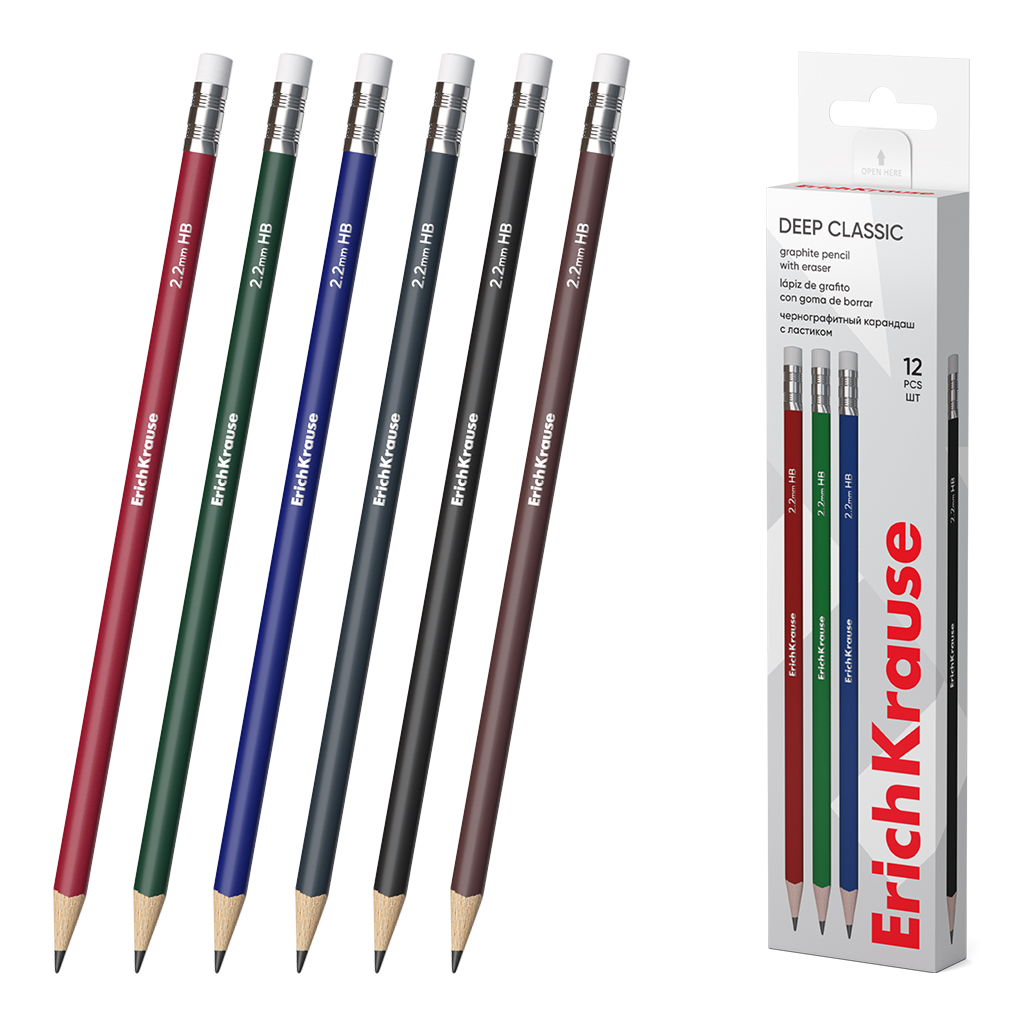 Карандаш простой с ластиком HB/ТМ ErichKrause Deep Classic/Классика трехганный/12/144