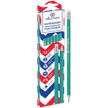 Карандаш простой с ластиком HB Attomex пластиковый зеленый/12/72