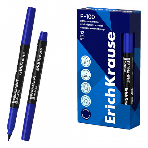 Маркер перманентный круглый синий 1 мм ErichKrause P-100/12/192