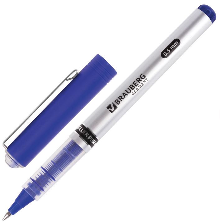 Ручка-роллер синяя 0,5 мм BRAUBERG "Flagman"