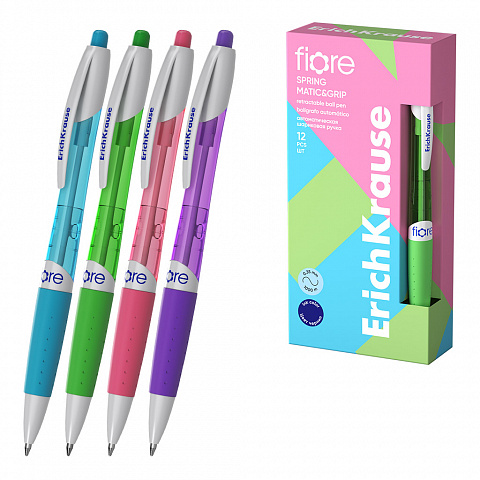 Ручка шариковая синяя автоматическая 0,7 мм грип ErichKrause FioreSpring/Оранжерея Весна/12/144/1728