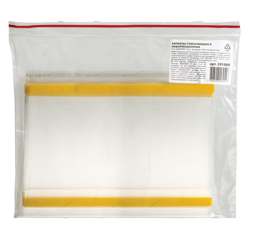 Карман самоклеящийся информационный горизонтальный (10 шт.) PS-T,А6