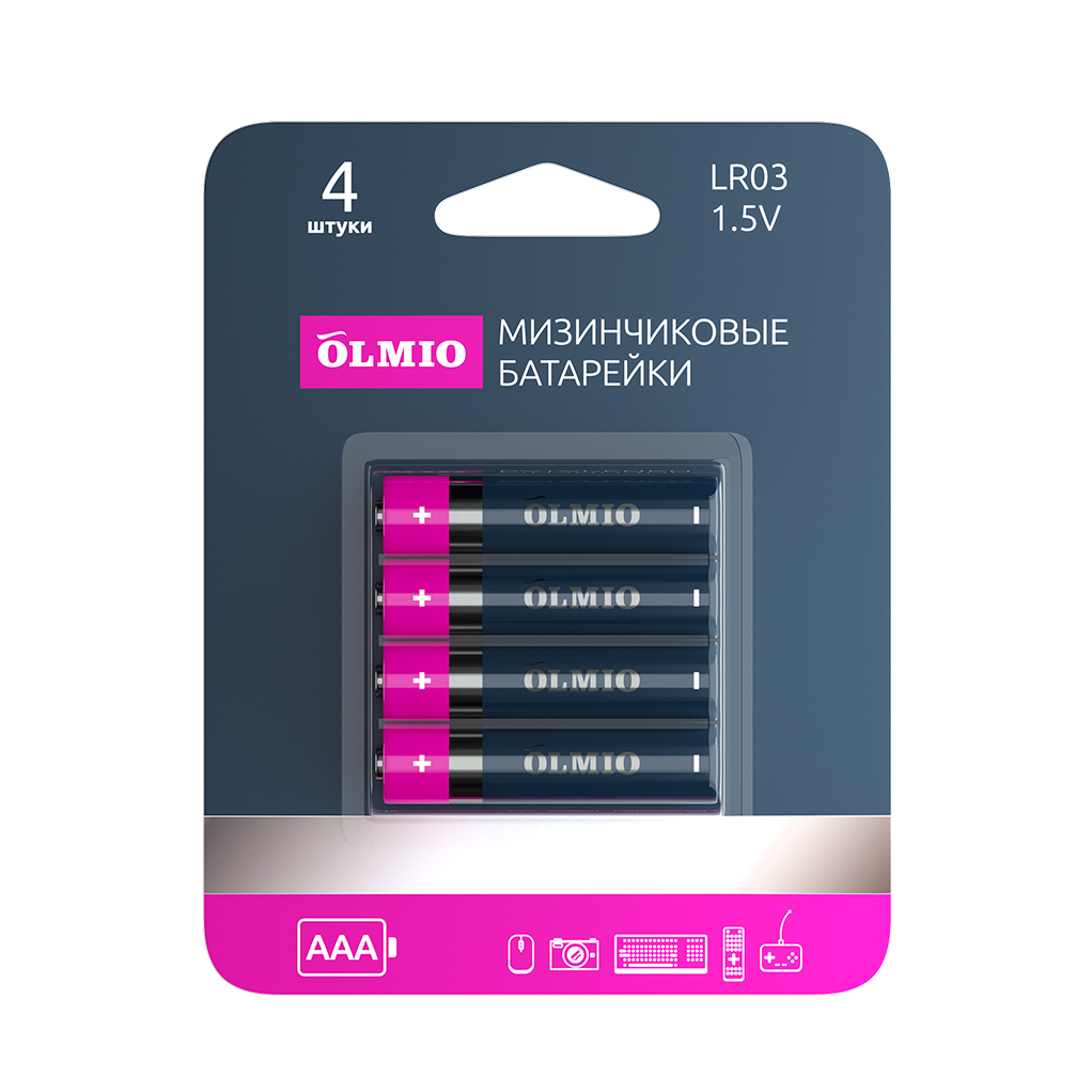Элемент питания Батарейка AAA/LR03 Olmio BL4 (упаковка 4шт)