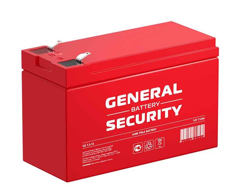 Аккумуляторная батарея General Security GS7.2-12 F2, напряжение 12 Вольт, емкость 7.2 Ач, сухой элемент, возможность использования в ИБП, габариты 151х65х94мм
