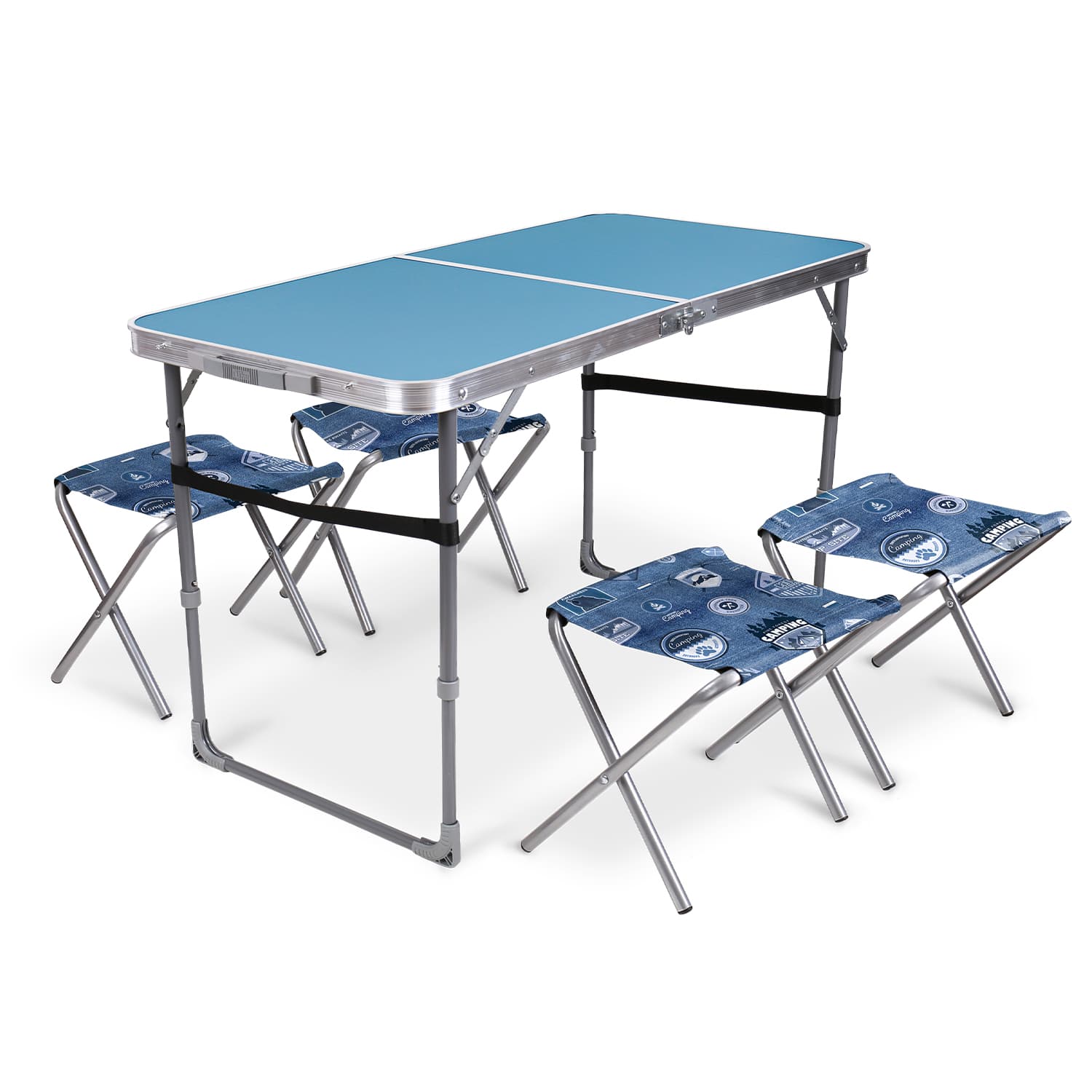 Набор стол складной стол и 4 стула, цвет голубой