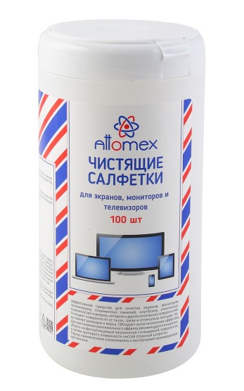 Салфетки чистящие для экранов Attomex 100 шт в тубе/12