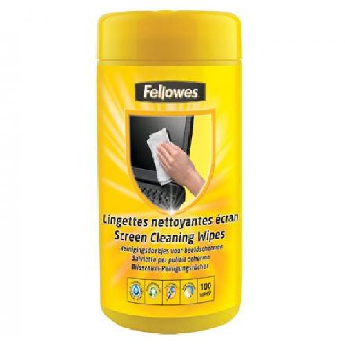 Салфетки чистящие для экранов дерматологически безопасные Fellowes 100 шт. в тубе/6