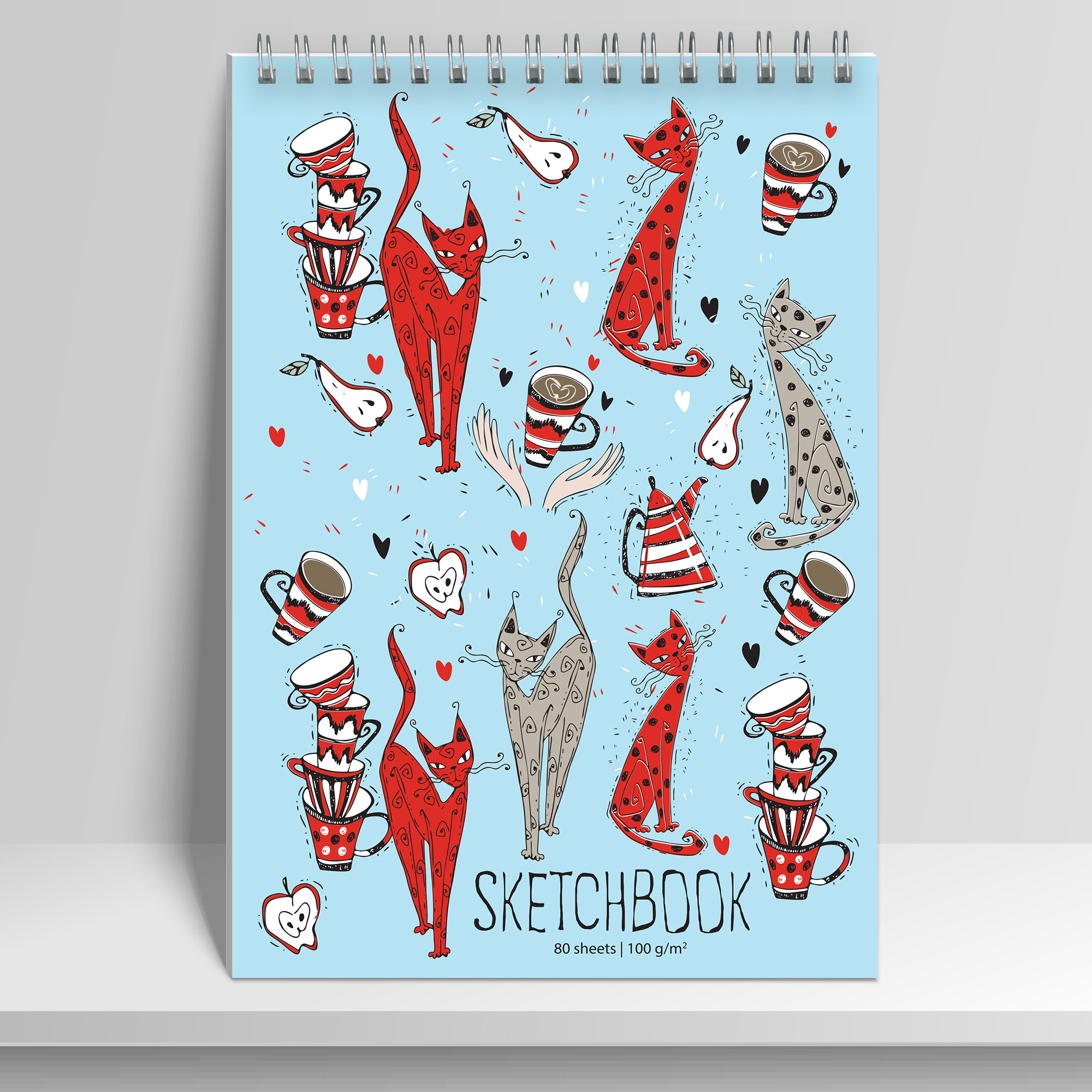 Скетчбук - альбом для рисования А5+80 л "Изящные кошки Sev" спираль/20