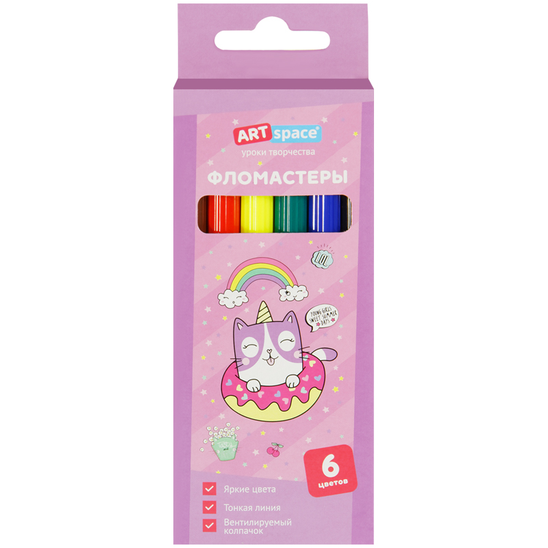 Фломастеры 6 цветов ArtSpace Кот-сластена/24