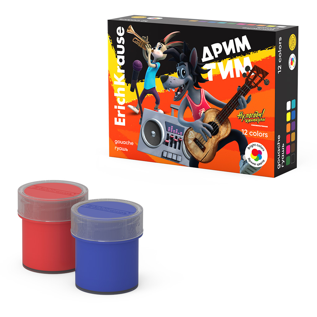 Гуашь 12 цветов по 20 мл ErichKrause Ну, погоди! Каникулы/18