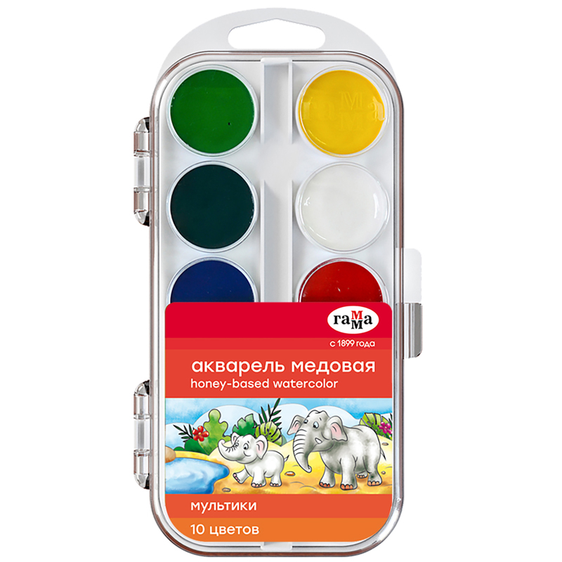 Краски акварельные 10 цветов "Мультики" б/к/18