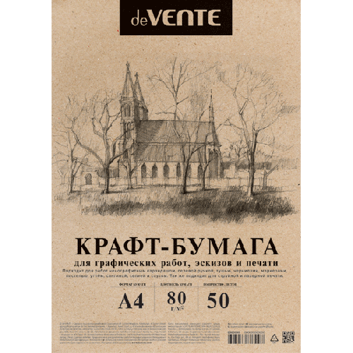 Крафт-бумага A4 50 л 78-80 г/м2 deVENTE /40