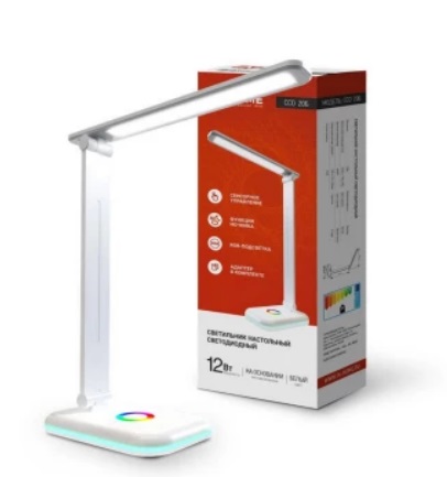 Лампа настольная IN HOME CCO-20 Б (12 W, сенсорное включение, 3 уровня яркости, RGB-подсветка ) белая