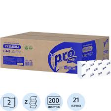 Полотенца бумажные листовые 1*1, 2 сл., 21,5х24 см, 200 л, Z-сложение белые PROtissue/21