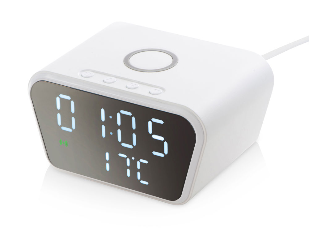 Настольные часы с функцией беспроводной зарядки «Wake», 10 Вт, белый
