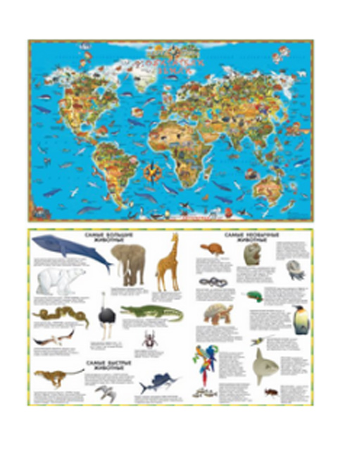 Карта Мира Обитатели Земли двухсторонняя настольная 54х37 см