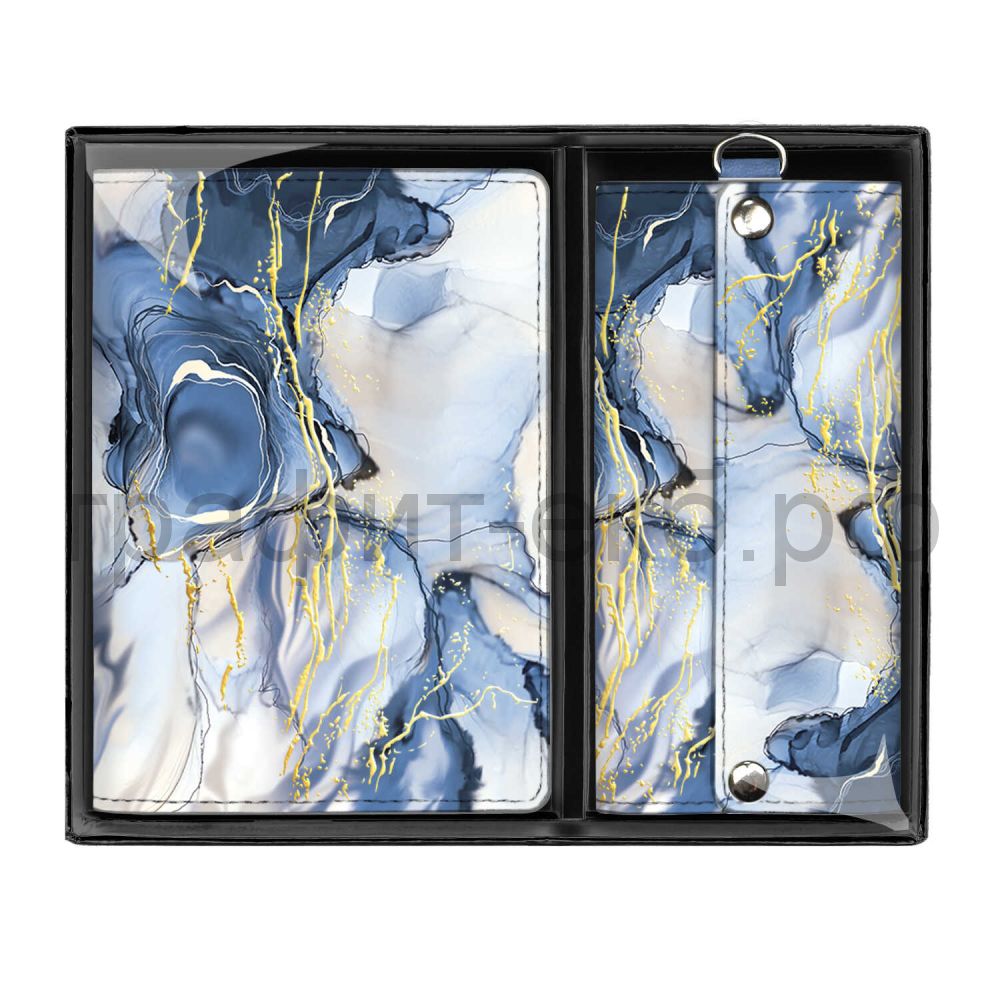 Набор подарочный "Синий мрамор" (обложка д/паспорта+ключница) искусственная кожа Escalada "Hanna"