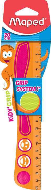 Линейка 20 см пластиковая непрозрачная ассорти нескользящая с трафаретами Kidy Grip Maped/20