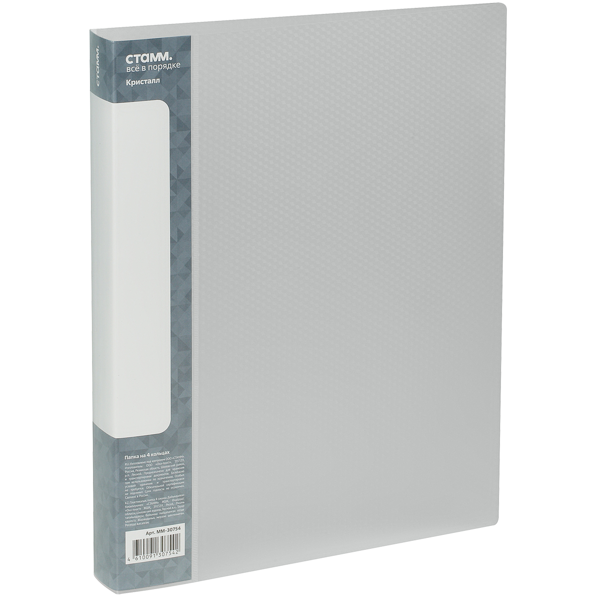 Папка на 4 кольцах 40 мм A4 СТАММ Кристалл прозрачная/12