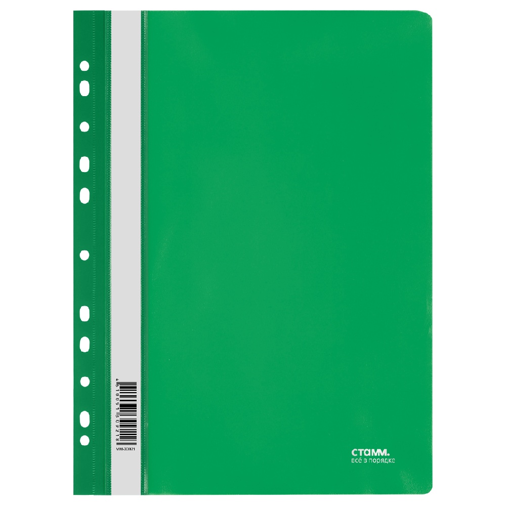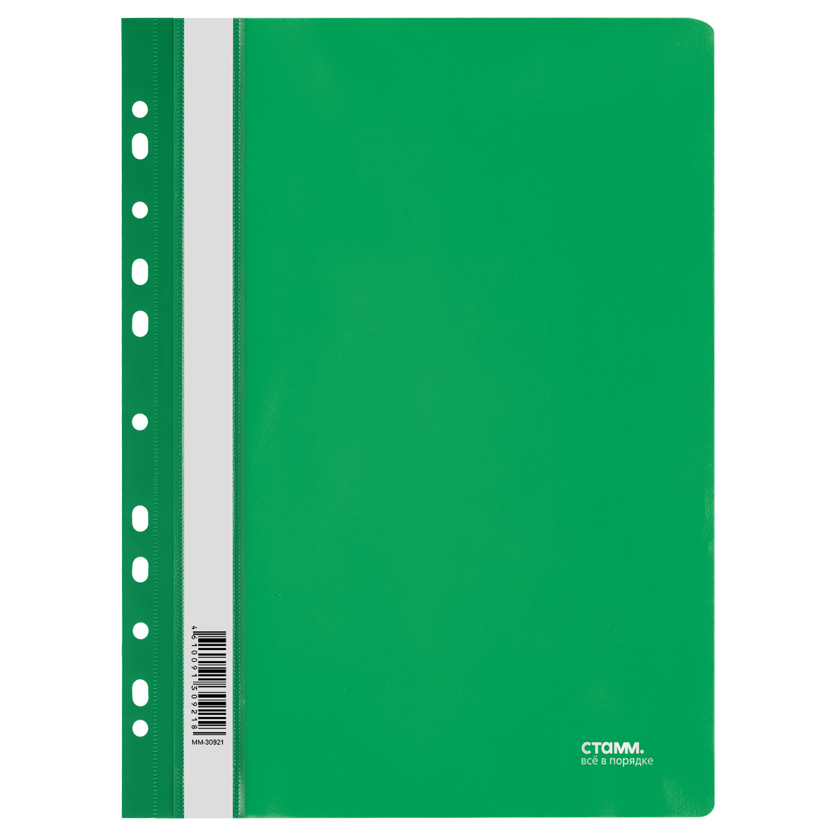 Скоросшиватель CТАММ пластиковый с перфорацией зеленый/10