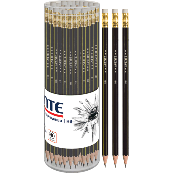 Карандаш простой с ластиком HB deVENTE черно-желтый корпус/50/1000