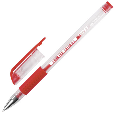 Ручка гелевая красная 0,5 мм грип STAFF/12/144