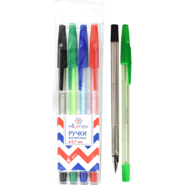 Набор шариковых ручек 4 цвета 0,7 мм (зеленый, красный, синий,черный) Attomex/24/144