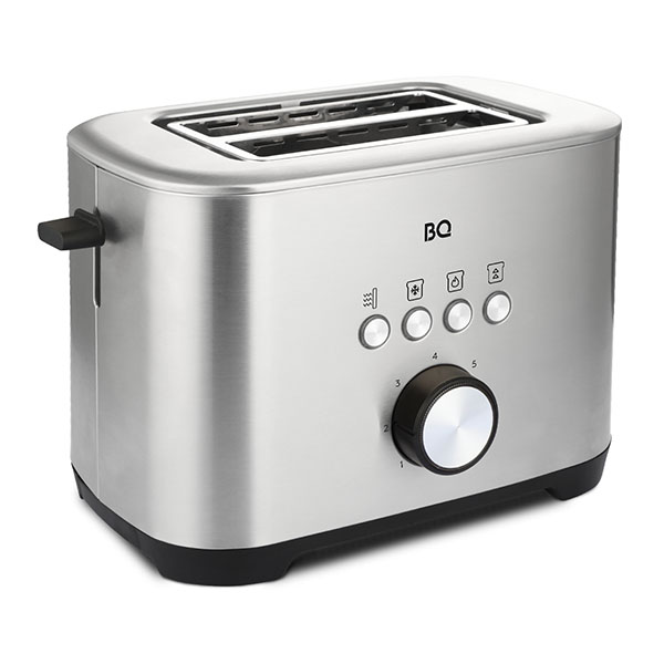 С помощью поворотного механизма можно устанавливать одну из 7 степеней подрумянивания корочки. Из особенностей тостера BQ T1010 – возможность поджаривания ломтиков с одной стороны. В модели также реализованы функции разморозки и подогрева хлебобулочных изделий.