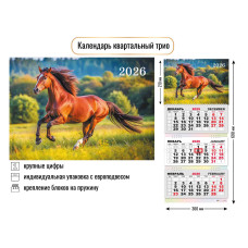 Календарь квартальный 2026 год 3-х бл., на 3-х гребнях "Символ года"