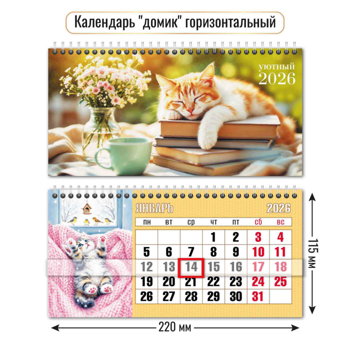 Календарь-домик настольный 2026 год "Кот" с курсором