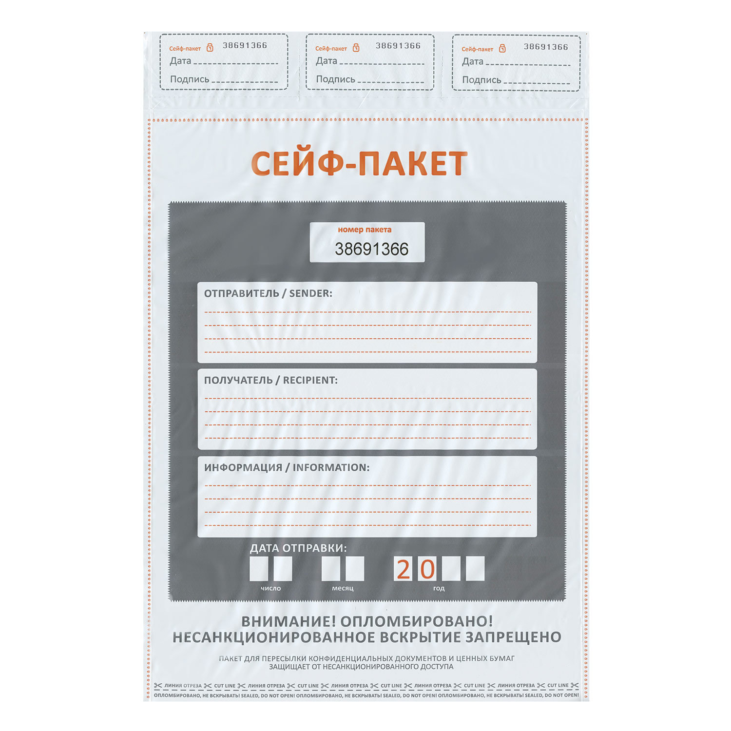 Сейф-пакеты полиэтиленовые 438х575 мм (ПО 1 ШТУКЕ)/50