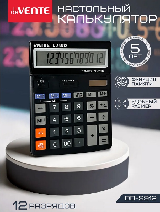Калькулятор 12 разрядов deVENTE DD-9912, подъемный дисплей/10