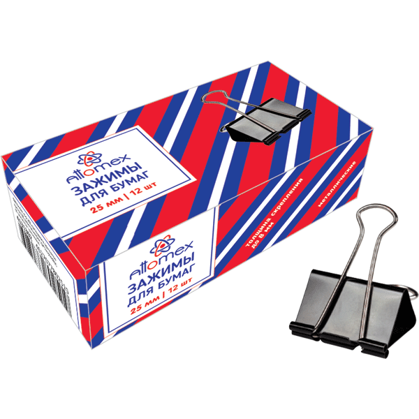 Зажимы для бумаг 25 мм (12 шт) черные в картонной коробке Attomex/12/240