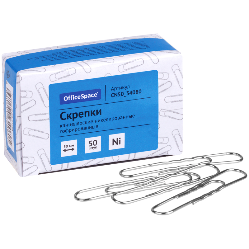 Скрепки 50 мм металлические овальные никелированные (50 шт) OfficeSpace