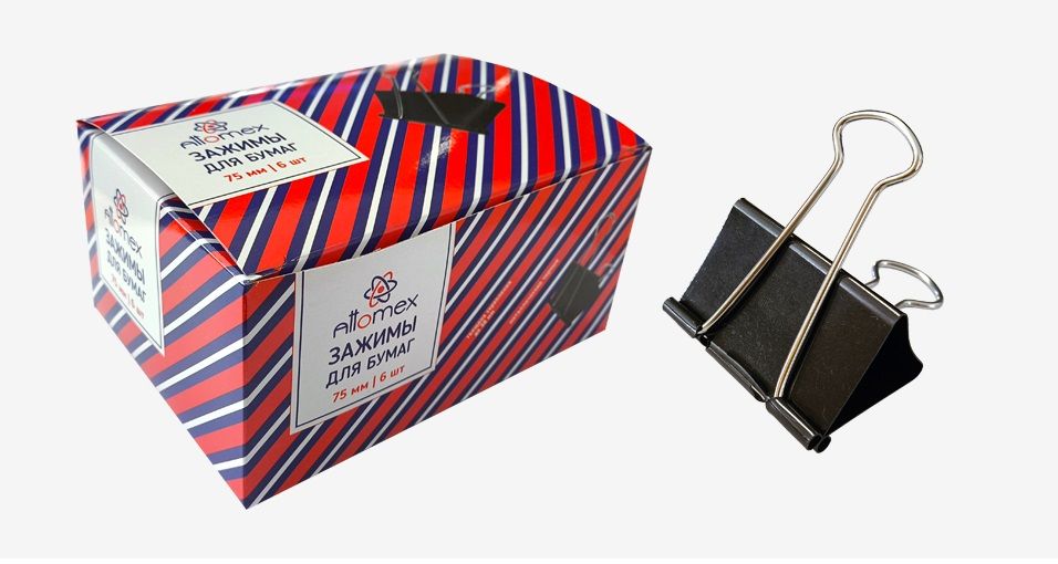 Зажимы для бумаг 75 мм (6 шт) черные в картонной коробке Attomex/48