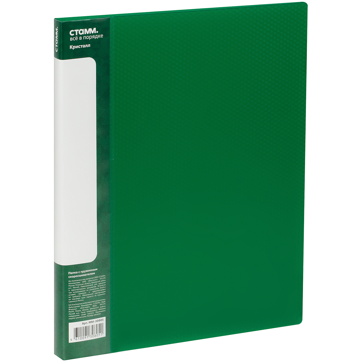 Папка-скоросшиватель А4 зеленая на пружине СТАММ Кристалл/30