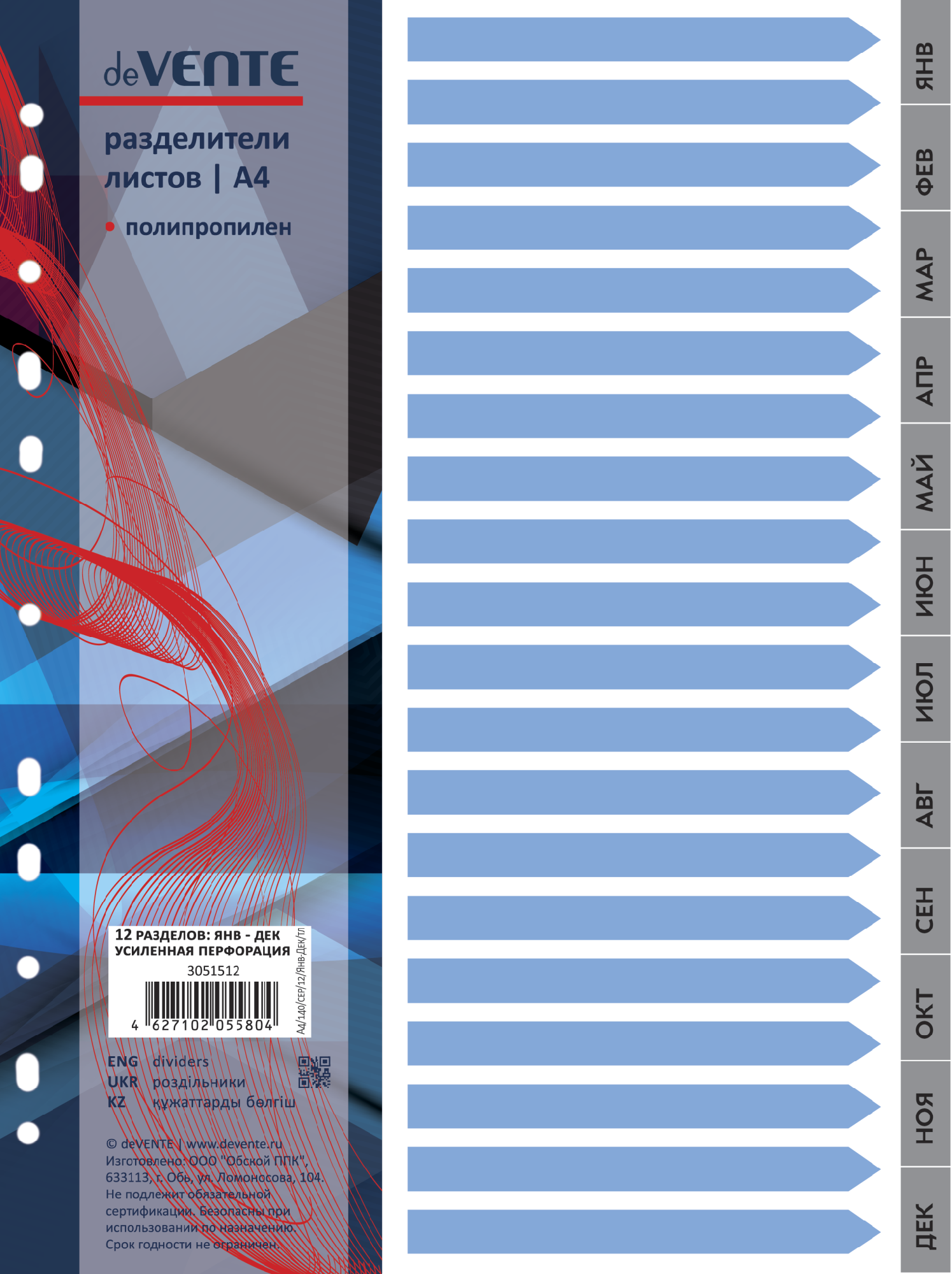 Разделитель А4 (январь-декабрь) пластиковый deVENTE/25